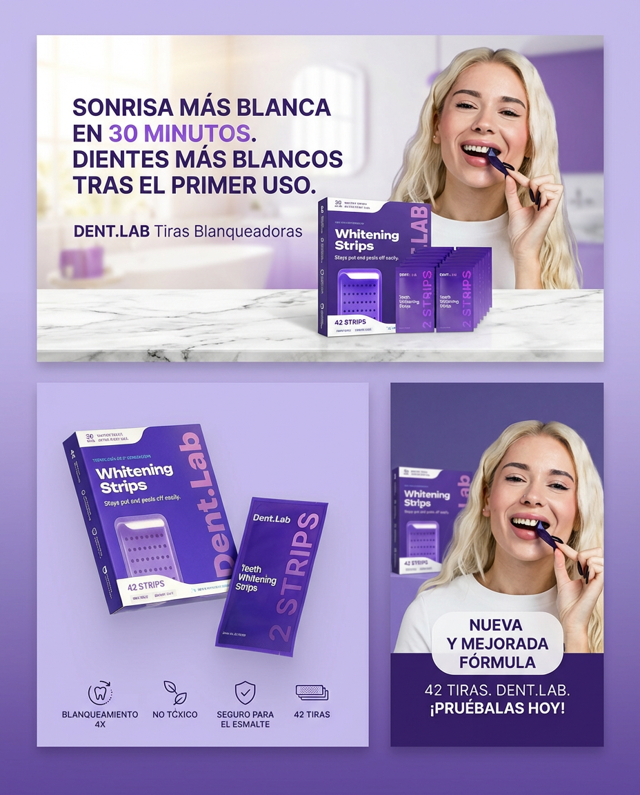 Las tiras Dent.Lab utilizan tecnología PAP, un agente blanqueador de nueva generación que ayuda a eliminar manchas superficiales sin causar sensibilidad. Solo 30 minutos al día para lograr una sonrisa más blanca y luminosa.